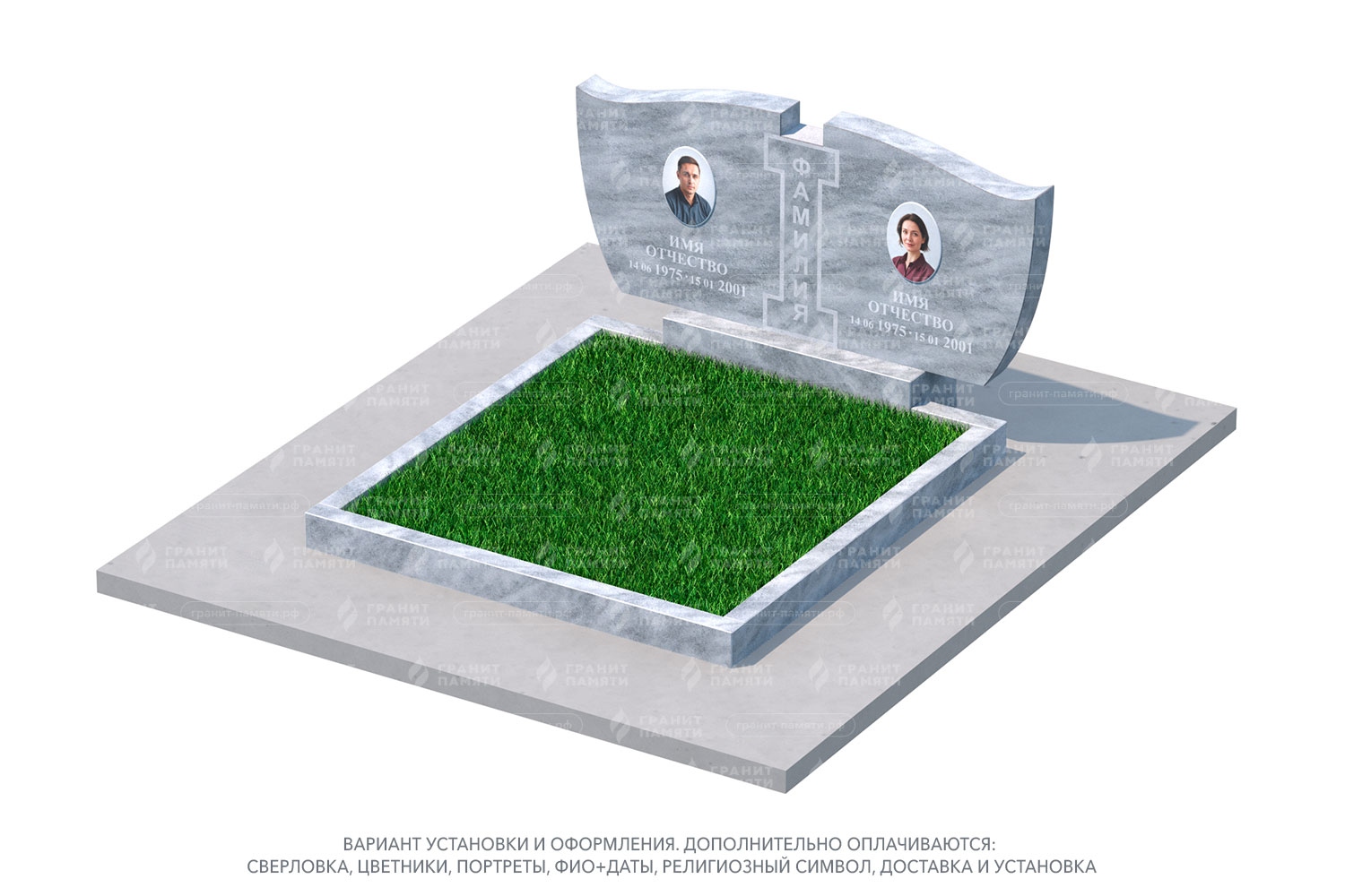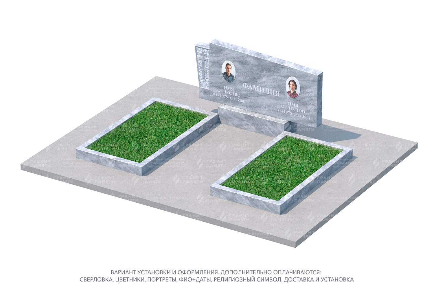 Какие элементы можно добавить к двойному памятнику?