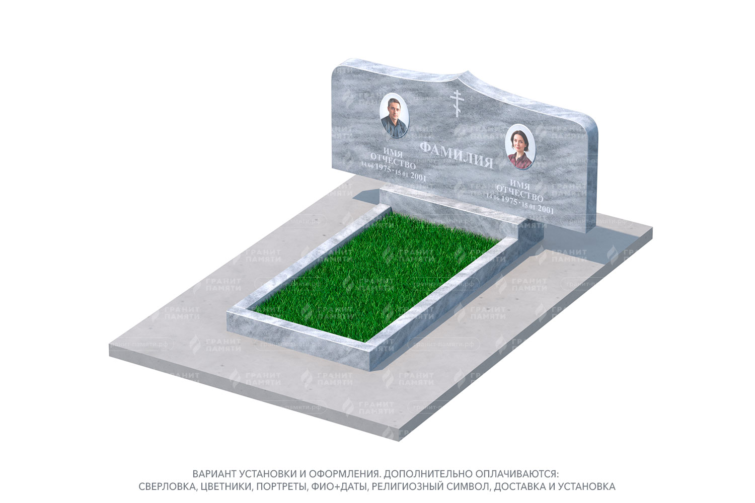 Мы можем добавить портреты на фотокерамике, гравировку с именами, датами и эпитафиями, а также декоративные элементы.